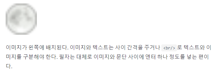 - left : 텍스트와 양쪽 정렬이되, 이미지가 왼쪽에 위치함
